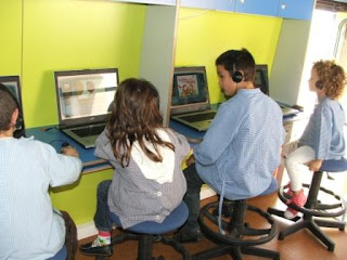 Aprendemos uma canção sobre indíos e jogámos jogos com caras engraçadas no computador.
